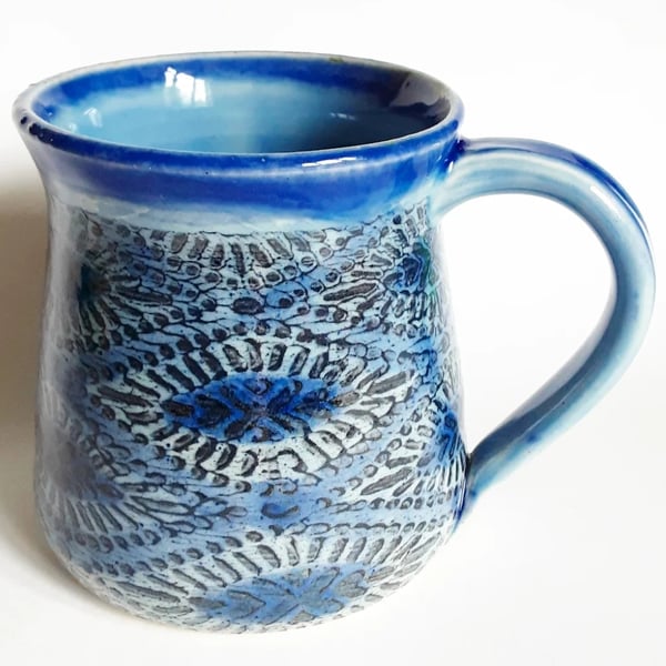 • Large Blue Patterned Glazed Mug - Hand Thrown Stoneware Ceramic Mug