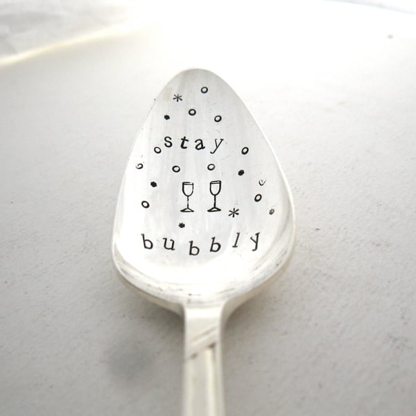 • Stay Bubbly, Hand Stamped Bottle Neck Bubble Saver Spoon
