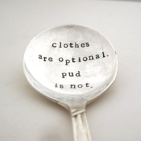 • Clothes are optional, pud is not, Handstamped Naturist Xmas Pudding Spoon