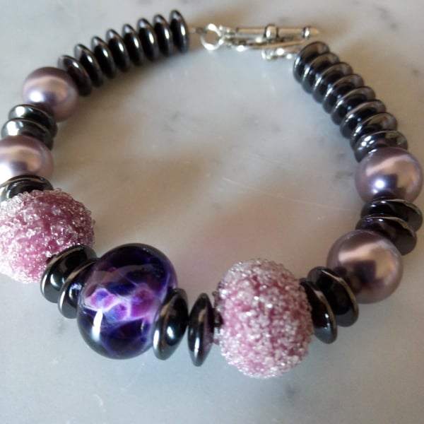 • SALE - HALF PRICE - PURPLE SUGAR LAMPWORK BRACELET - FREE UK SHIPPING