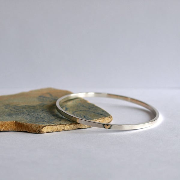 • Silver Bangle with 9ct Gold Heart - Sterling Silver Bangles