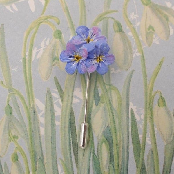 • TINY Blue FORGET-ME-NOT PIN : Hand Painted Forget-Me-Not Flower Lapel Brooch