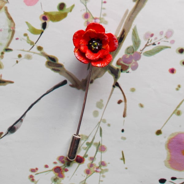 • TINY RED POPPY PIN Wedding Corsage Remembrance Lapel Flower Brooch HAND PAINTED