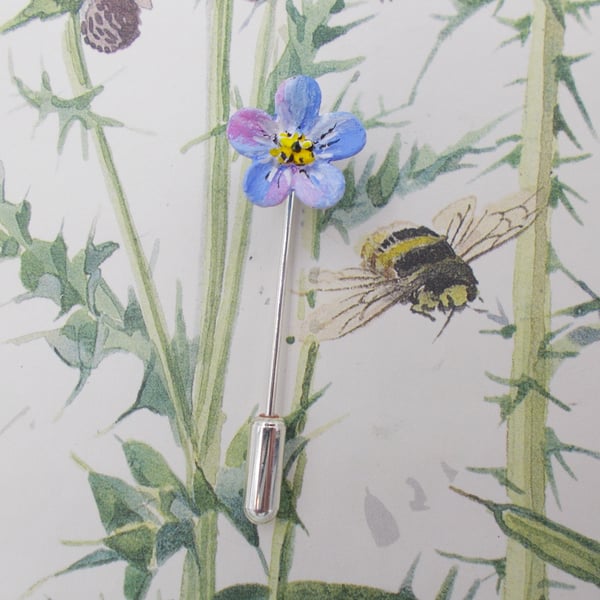 • Blue FORGET-ME-NOT PIN : Hand Painted Forget-Me-Not Blue Floral Lapel Brooch