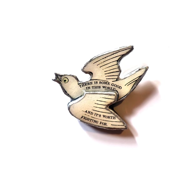 • Literary Peace Dove Tolkien Quote Bird Brooch by EllyMental