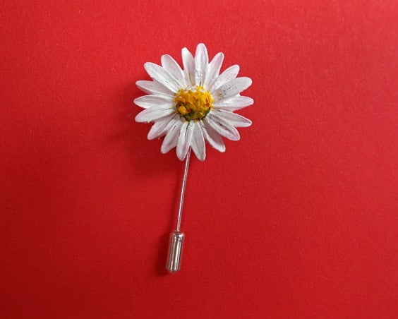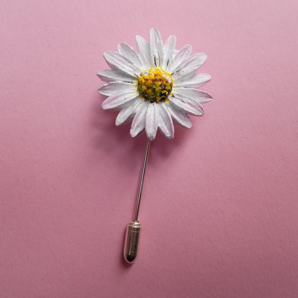 •  WHITE LAWN DAISY PIN:  Daisy Wedding Lapel Flower Brooch HAND PAINTED