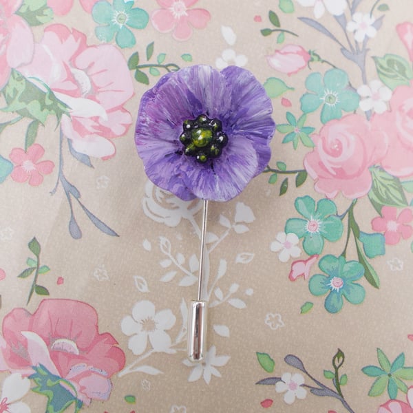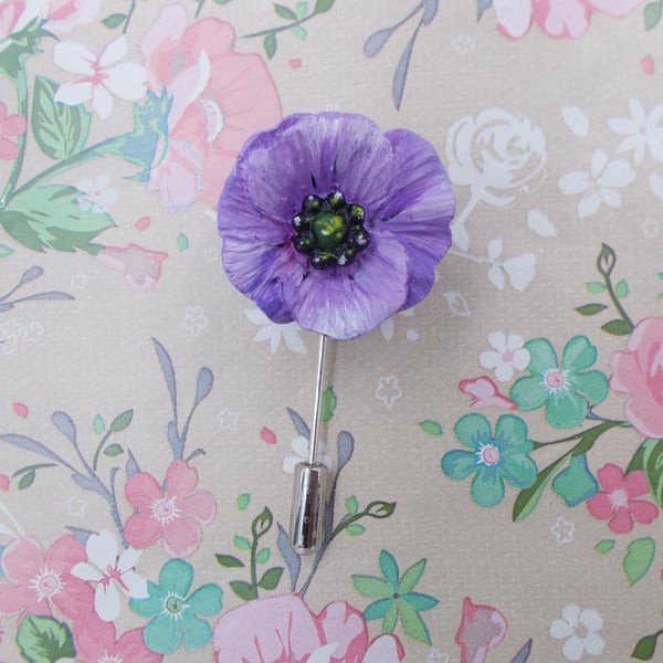• PURPLE POPPY PIN Memorial War Animals Remembrance Lapel Flower Pin HAND PAINTED