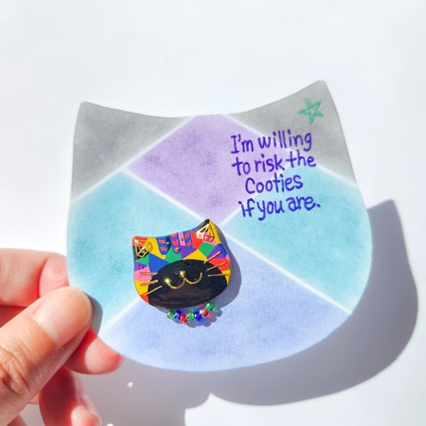 • Hand-painted Shrink Plastic Brooch with hand-coloured card