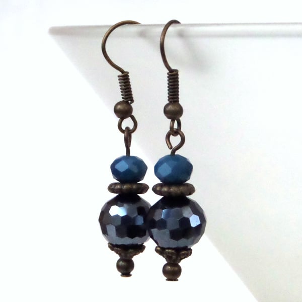 • Vintage style bronze earrings with jet blue crystals