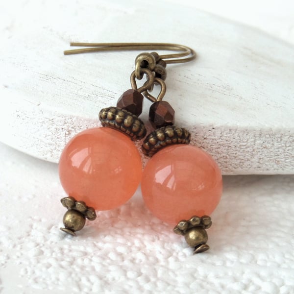 • Caramel and white agate and copper earrings