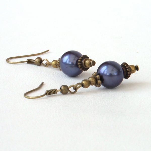 • Swarovski® crystal pearl earrings, with deep blue pearls and blue crystal