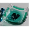Very beautiful red fused glass . I already had one the same in the very pale lilac and I cannot stop touching and admiring how lovely it is. An item for the senses ! The Rustic shaped blue ring dish is going to be a gift ! Sent in the most ingenious infamous takeaway packaging ! I very much love this sellers creativity and for her efforts to save the planet !
