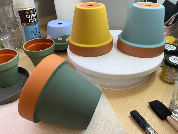 My adventure began at the beginning of the first lockdown when I became furloughed from my job and was desperate to find something to keep me busy! I’ve always had a creative streak and decided that I would paint some terracotta pots to display my herbs in the kitchen. Then I started getting carried away and was soon experimenting with all sorts of different design ideas. I trialled bright colours and patterns and I eventually settled on my current, more muted pallet, featuring flora and fauna!