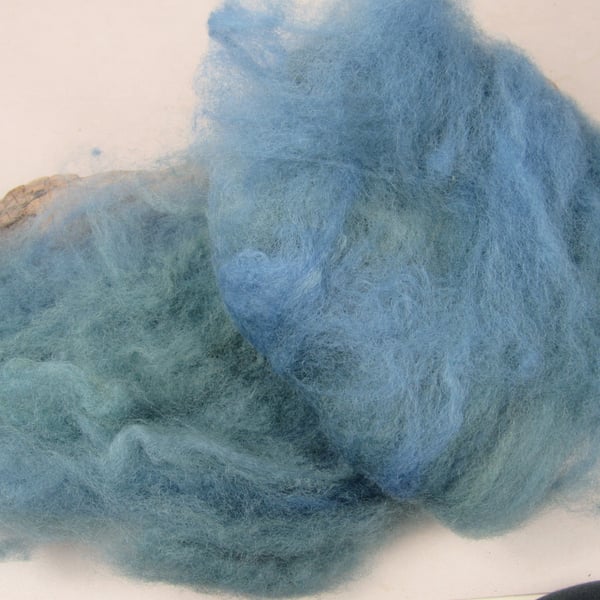 • 10g Naturally Dyed Light Indigo Blue Llanwenog Felting Wool
