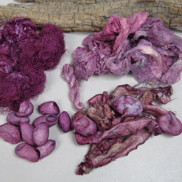 • Natural Dye Logwood Dark Purple Mixed Silk Fibre Texture Craft Pack