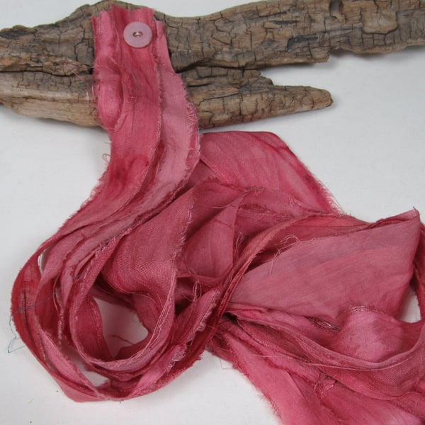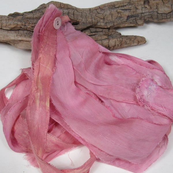 • Cochineal Natural Dye Pink Scrappy Cotton Silk Ribbon Pack