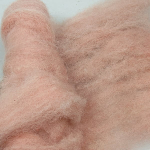 • 10g Naturally Dyed Shell Pink Peach Llanwenog Felting Wool
