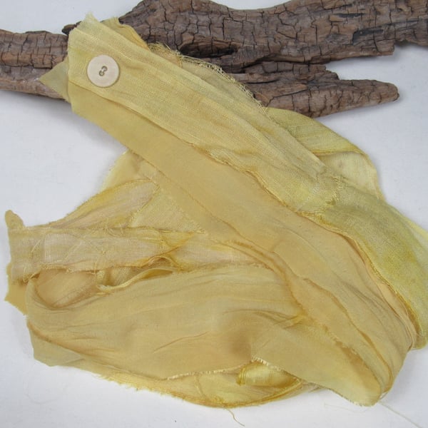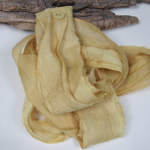 • Pomegranate Natural Dye Gold Yellow Scrappy Cotton Silk Ribbon Pack