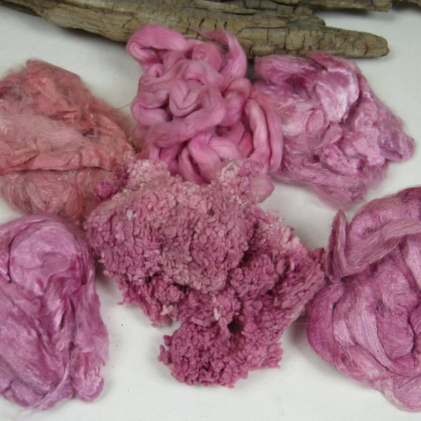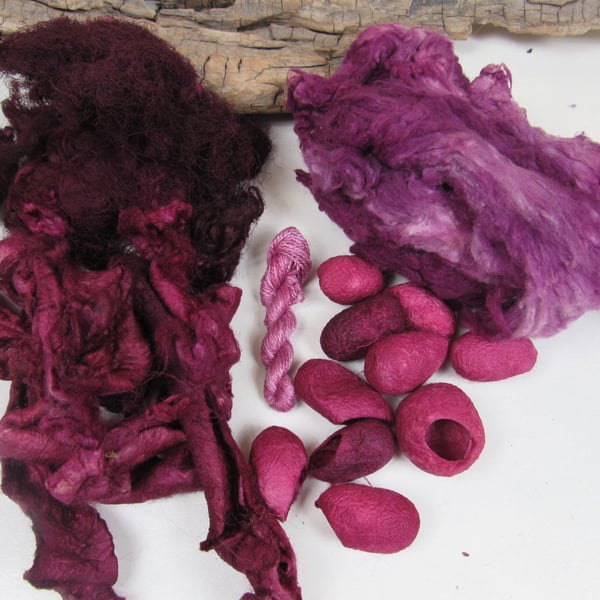 • Natural Dye Cochineal Pink Mixed Silk Fibre Texture Craft Pack
