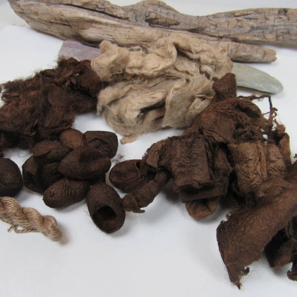 • Natural Dye Walnut Brown Mixed Silk Fibre Texture Craft Pack